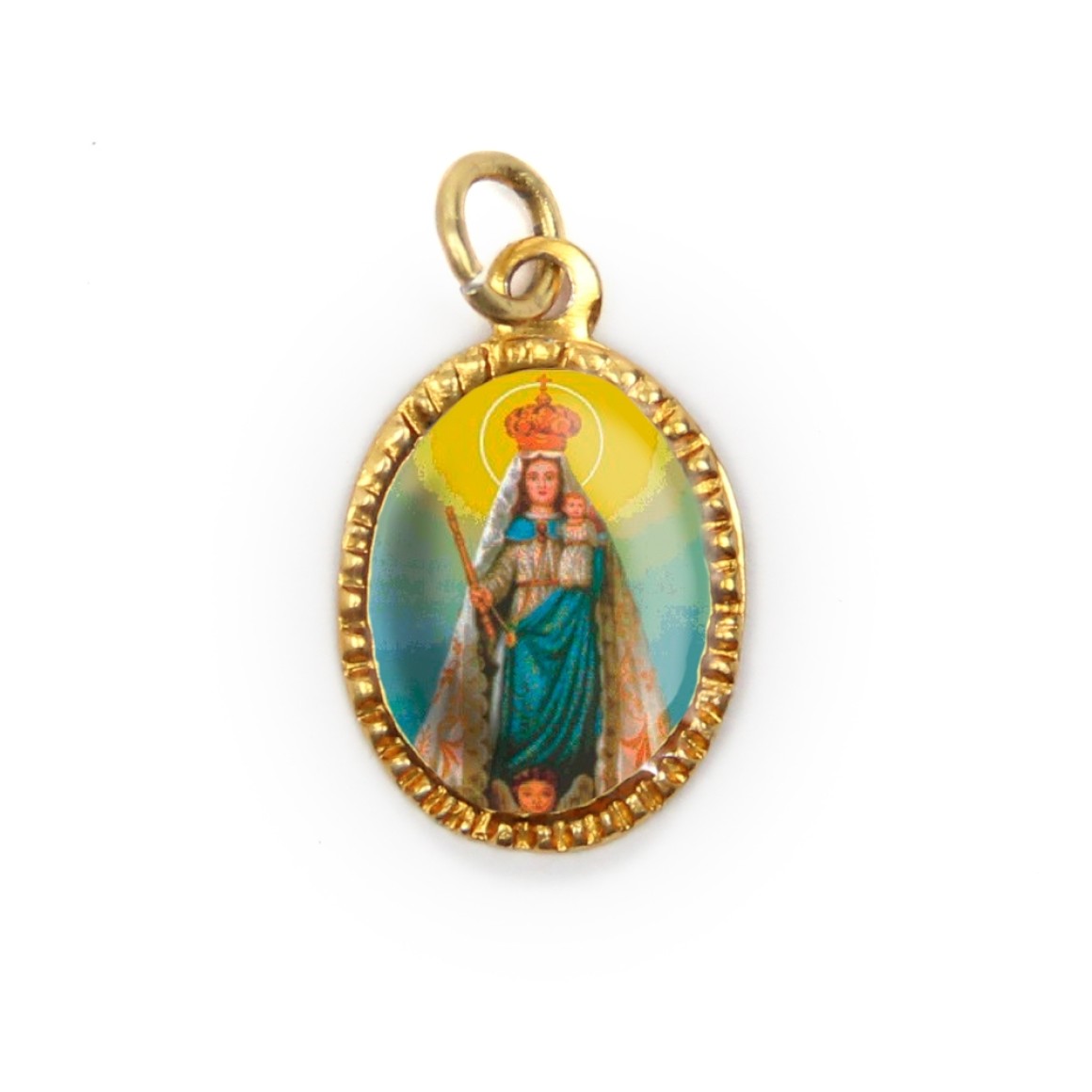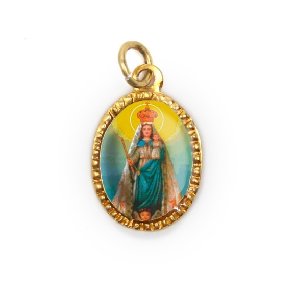 *Medalha de Alumínio Oval Dourada c/ 10un. N. Sra. Da Penha - 2X1,3cm.