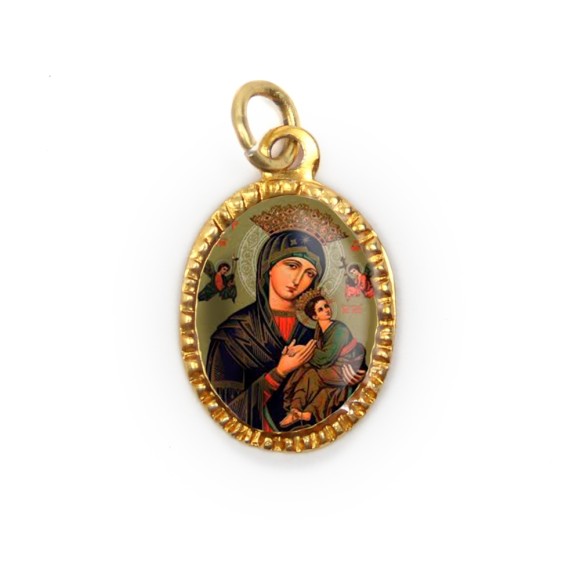 MD103059P10 - Medalha de Alumínio Oval Dourada c/ 10un. N. Sra. Do Perpétuo Socorro - 2X1,3cm