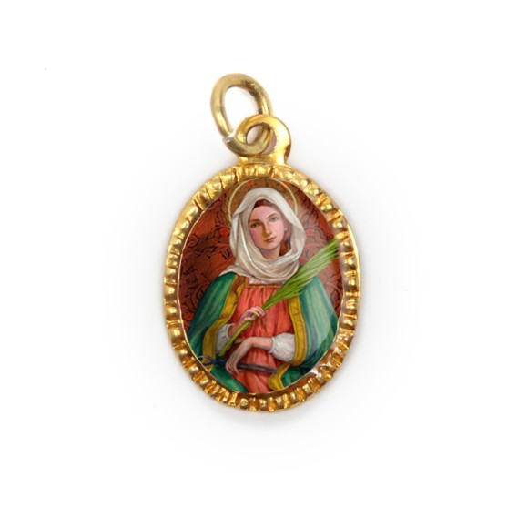*Medalha de Alumínio Oval Dourada c/ 10un. Santa Apôlonia - 2X1,3cm.