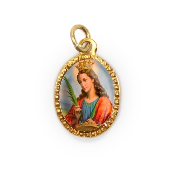MD103080P10 - Medalha de Alumínio Oval Dourada c/ 10un. Santa Catarina - 2X1,3cm