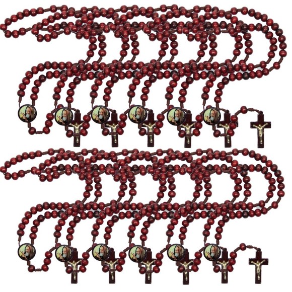 *Terço São Padre Pio de Pietrelcina Madeira c/ 12un. - 37cm.