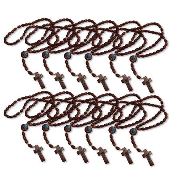 TE942418P12 - Terço Divino Pai Eterno Madeira c/ 12un. - 45cm