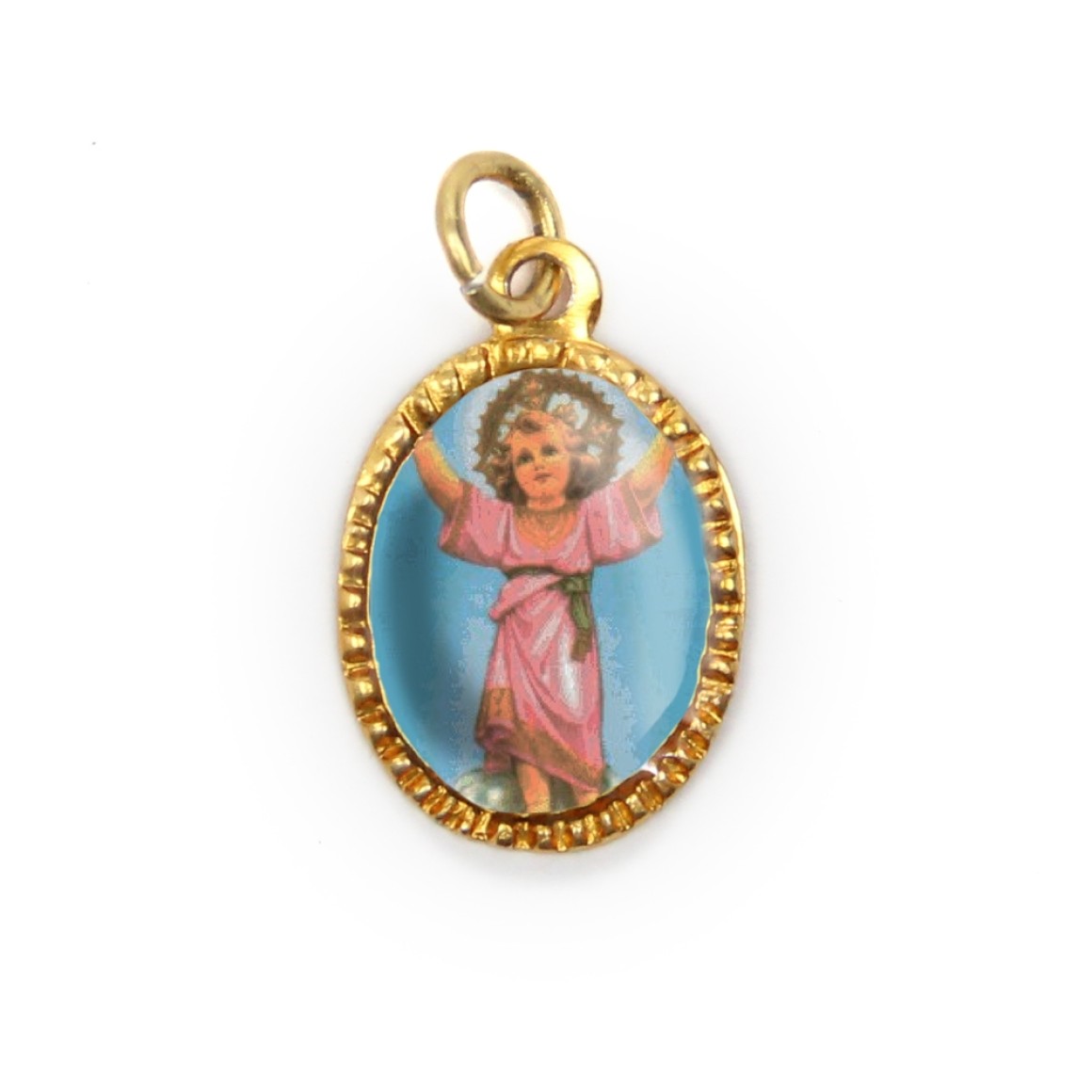 *Medalha de Alumínio Oval Dourada c/ 10un. Menino Jesus - 2X1,3cm.