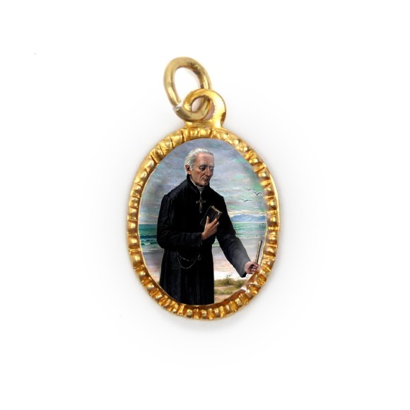 MD103213P10 - Medalha de Alumínio Oval Dourada c/ 10un. Padre José de Anchieta - 2X1,3cm