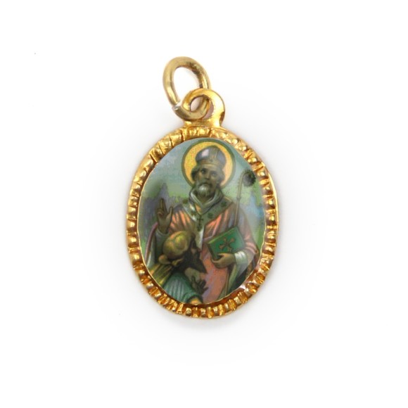 *Medalha de Alumínio Oval Dourada c/ 10un. Santo Agostinho - 2X1,3cm.