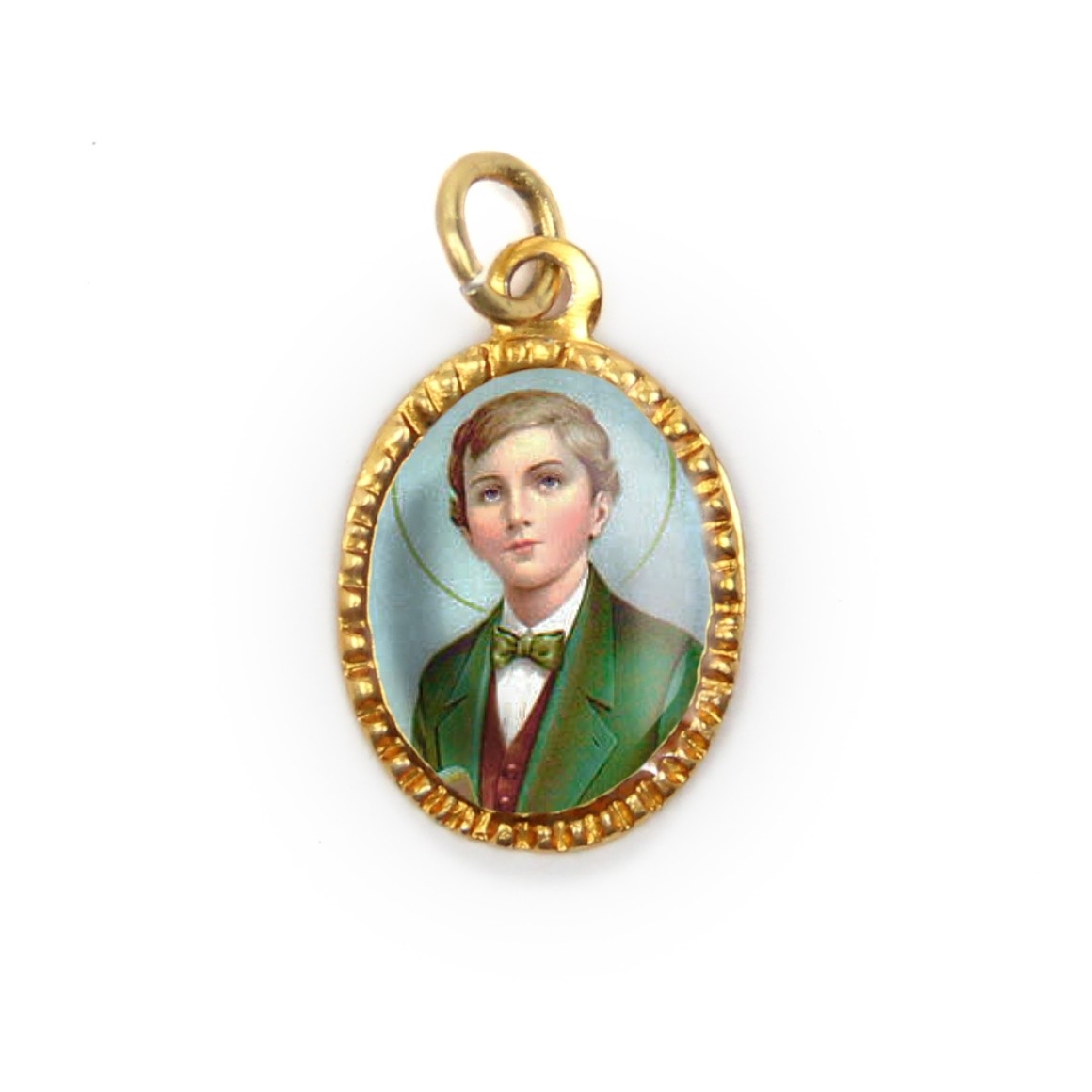MD103238P10 - Medalha de Alumínio Oval Dourada c/ 10un. São Domingos Sávio - 2X1,3cm