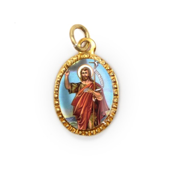 *Medalha de Alumínio Oval Dourada c/ 10un. São João Batista - 2X1,3cm.