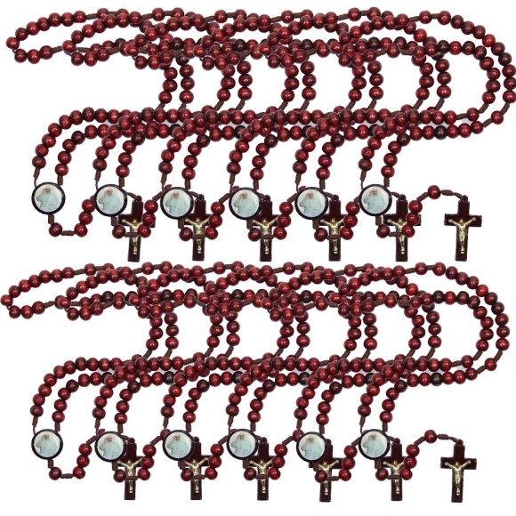 *Terço Papa Francisco Madeira c/ 12un. - 37cm.