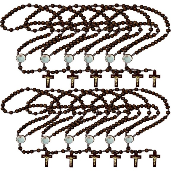 *Terço Papa Francisco Madeira c/ 12un. - 37cm.