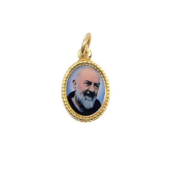 *Medalha São Padre Pio de Pietrelcina Alumínio Oval Dourada c/ 20un. - 1,5x1cm.