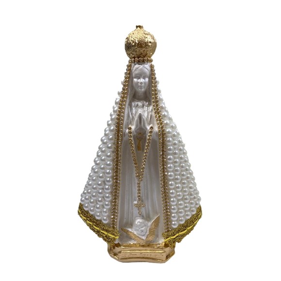 IM100280 - Imagem N. Sra. Aparecida c/ Pérola Branca e Strass - 22x14cm