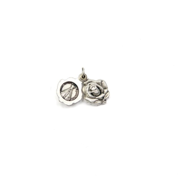 *Medalha N. Sra. Aparecida e Basílica de Aparecida Italiana Rosa Dupla Prateada - 2x1,5cm.