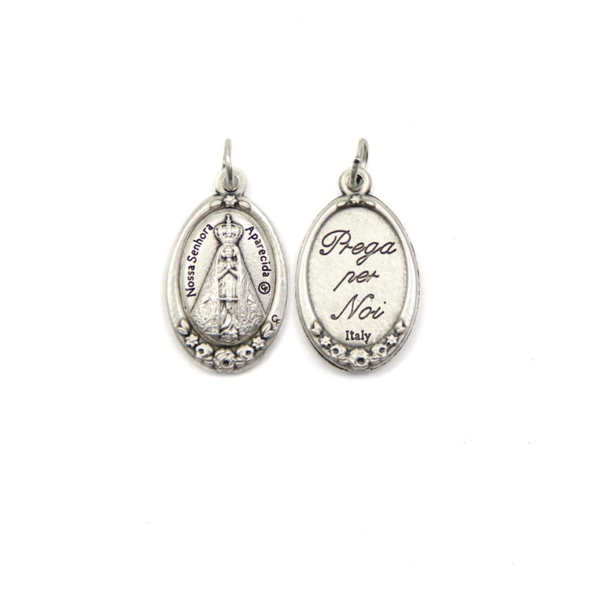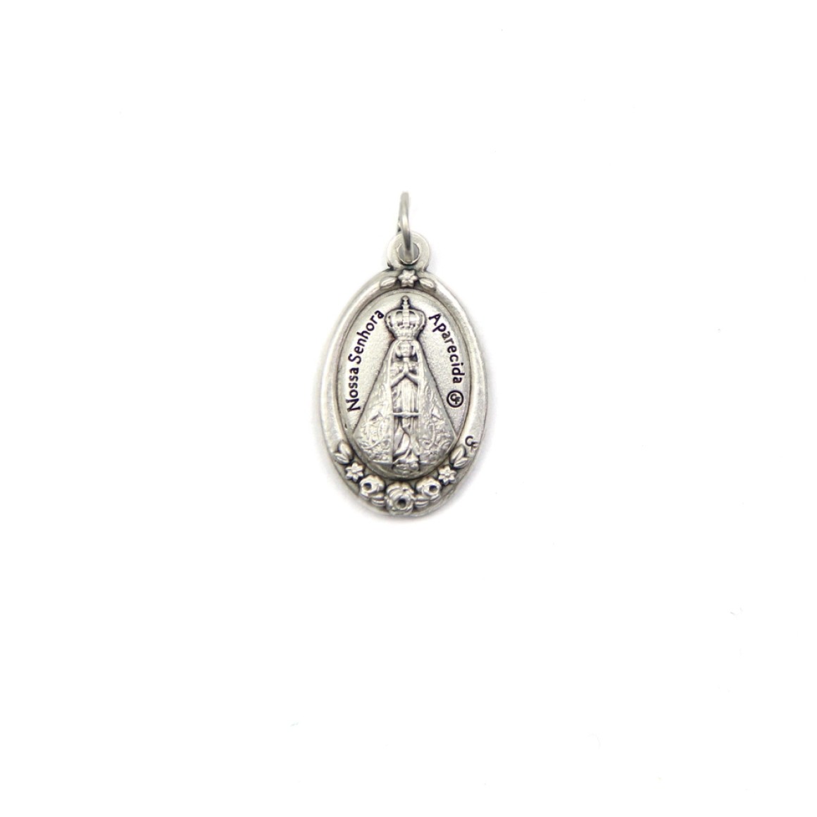 *Medalha N. Sra. Aparecida Italiana Oval Prateada - 2,5x1,7cm.