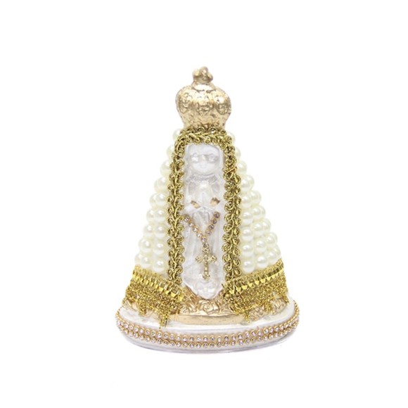 IM720221 - Imagem N. Sra. Aparecida Infantil c/ Pérola Creme e Strass - 14,5x9,5cm