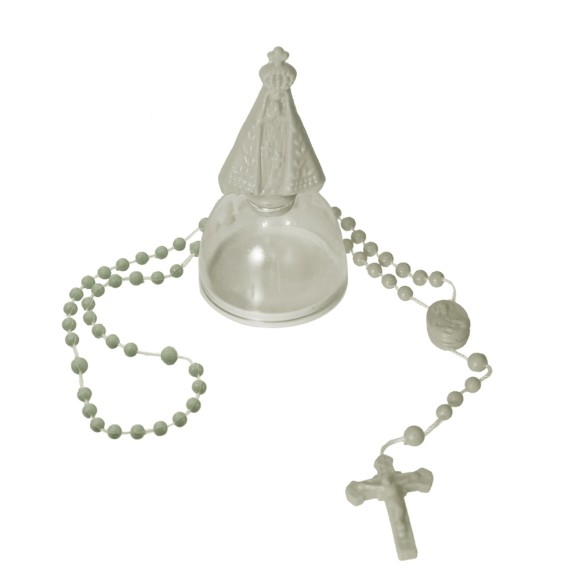 2. TE050650 - Cúpula N. Sra. Aparecida c/ Terço de Acrílico Branco - Cúpula 8x4cm Terço 31cm