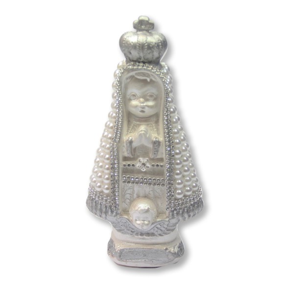 *Imagem N. Sra. Aparecida Infantil c/ Pérola Branca e Strass - 20x9,5cm.