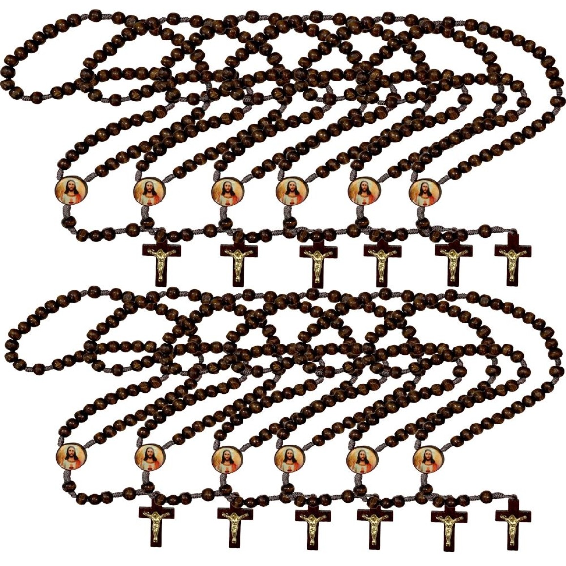 *Terço Sagrado Coração de Jesus Madeira c/ 12un. - 37cm.