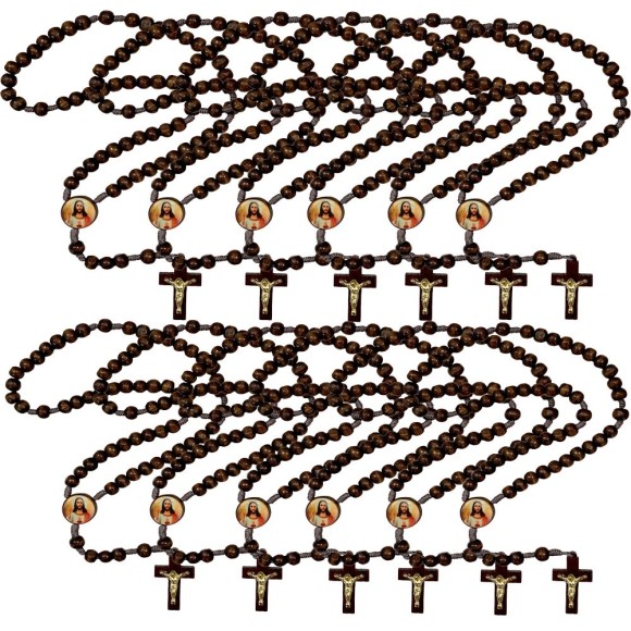 TE940500P12 - Terço Sagrado Coração de Jesus Madeira c/ 12un. - 37cm
