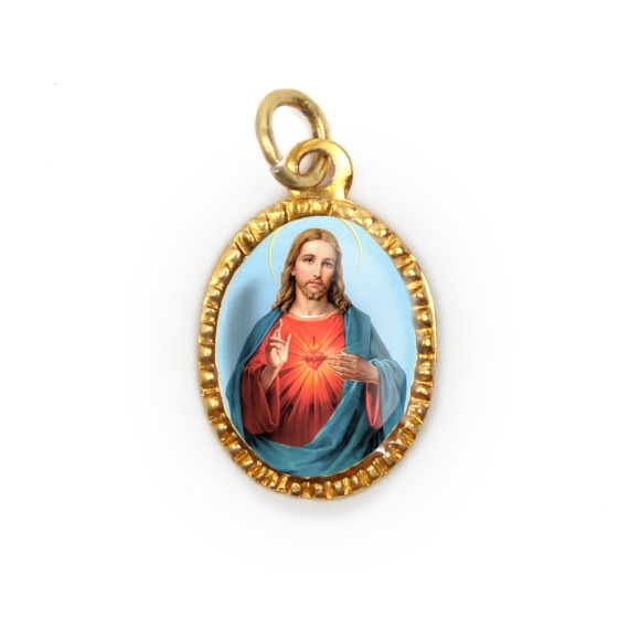 *Medalha de Alumínio Oval Dourada c/ 10un. Sagrado Coração de Jesus - 2X1,3cm.