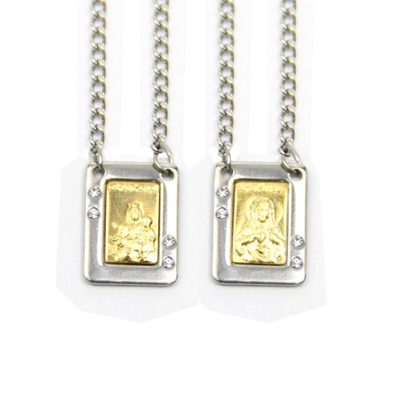 *Escapulário N. Sra. Do Carmo Aço Inox c/ Strass.