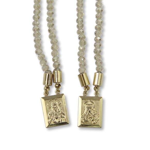 - ES350322 - Escapulário N. Sra. Do Carmo e Sagrado Coração de Jesus Cristal Bege - 70x1,4cm