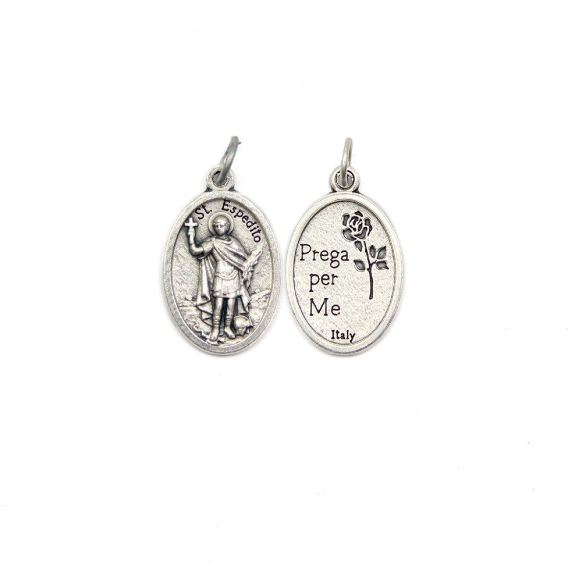 *Medalha Santo Expedito Italiana Oval Prateada c/ 2un. - 2,5x1,7cm.