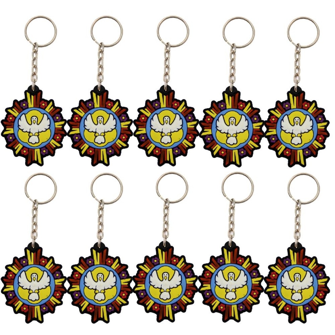 CH50813P10 - Chaveiro Divino Espírito Santo Emborrachado c/ 10un. - 11x5,5cm