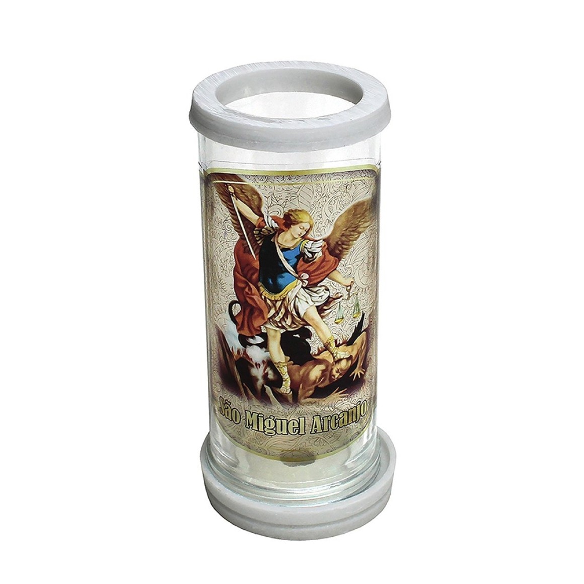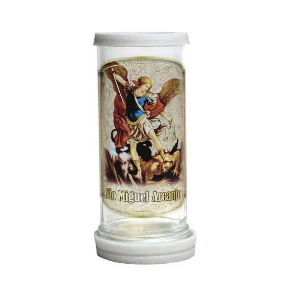 PV158300 - Porta Vela Vidro São Miguel Arcanjo - 18x8cm