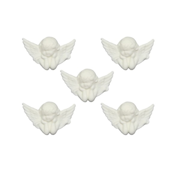 AJ11001P5 - Anjinho de Biscuit Branco c/ 5un. - 3,2x2cm
