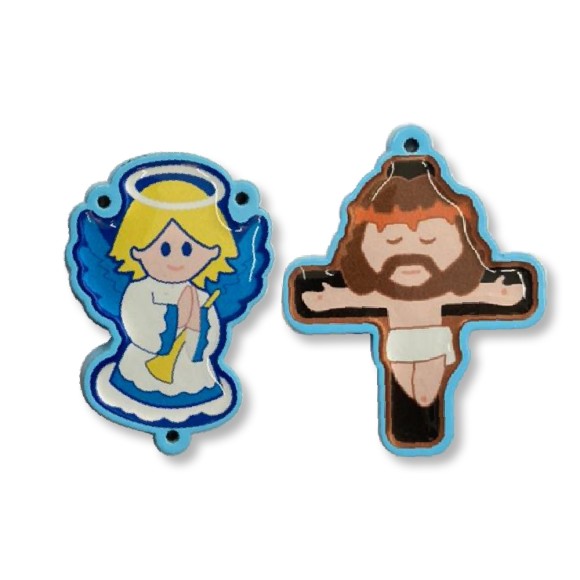 *Kit contendo 1un. Cruz e 1un. Entremeio Anjinho Azul Madeira Resinada.
