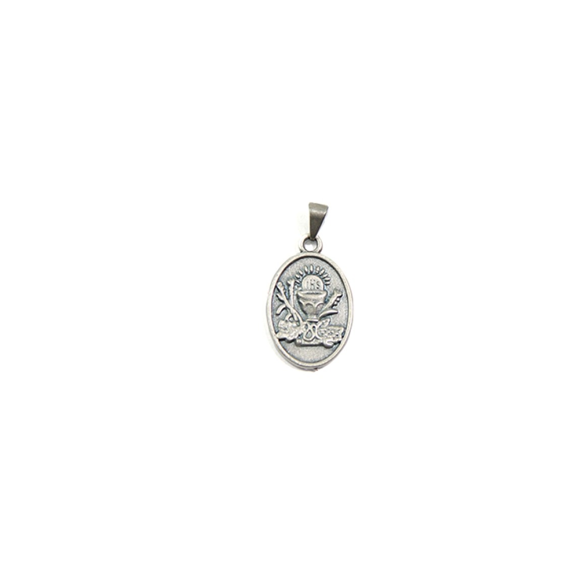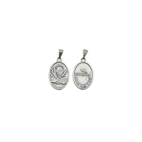 - MD112090P2 - Medalha Primeira Eucaristia Oval Dupla Níquel Envelhecido c/ 2un. - 2,5x1,5cm