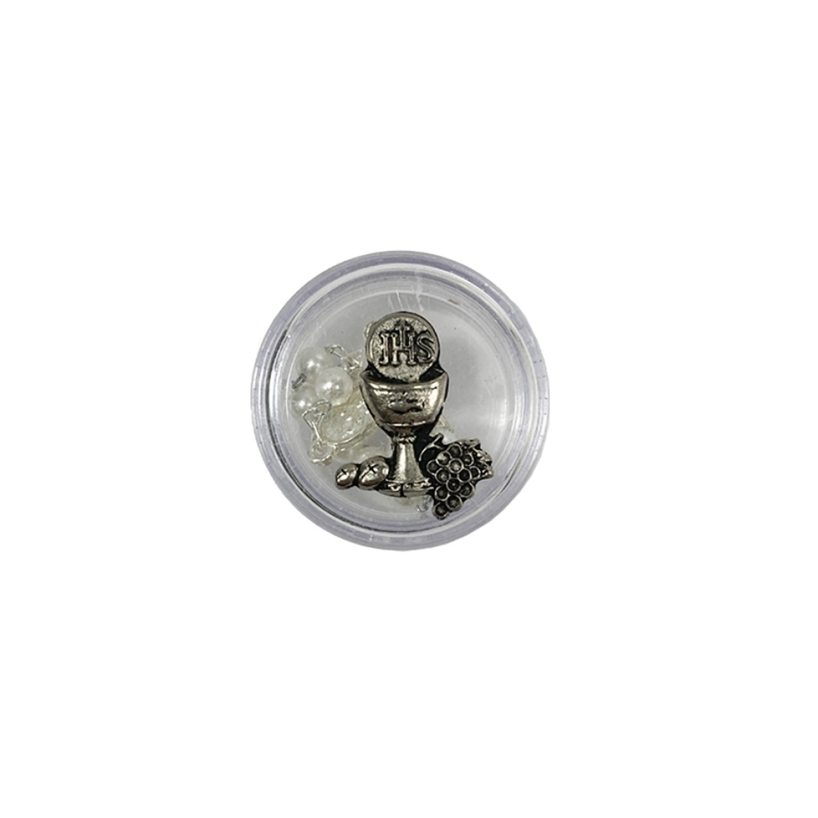 *Caixinha Primeira Eucaristia Níquel Envelhecido c/ Dezena - 3,8x1,7cm.