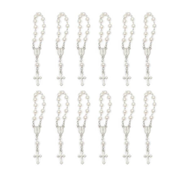 DZ1070002P12 - Dezena Pérola Branca c/12un. (Mini Terço) - 9,5x1cm