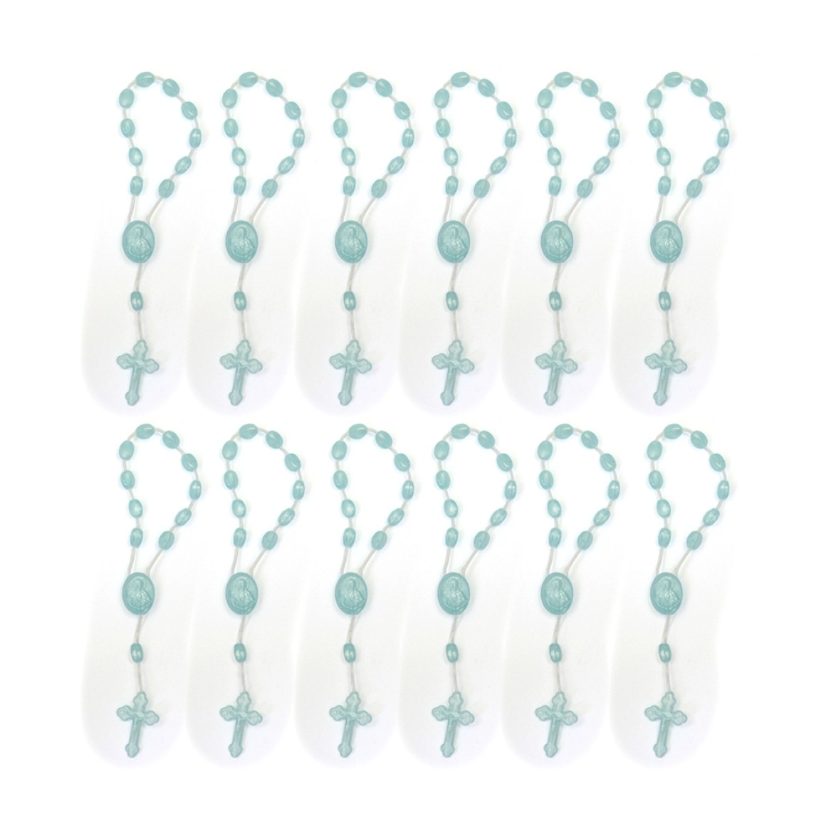 DZ05005P12 - Dezena de Acrílico Azul Perolado c/12un. (Mini Terço) - 13,5x1cm