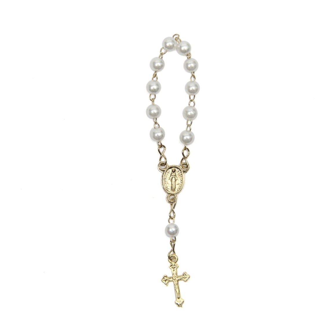 *Dezena Dourada de Pérola Branca c/12un. (Mini Terço) - 9,5x1cm.
