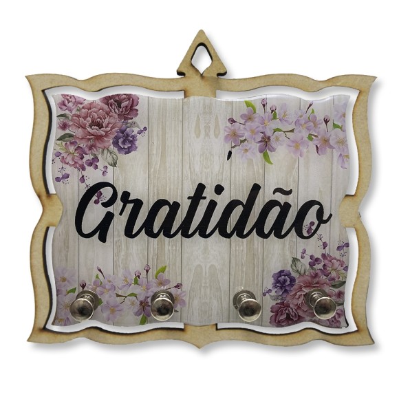 *Porta Chaves Gratidão MDF Resinado - 15,5x14cm.