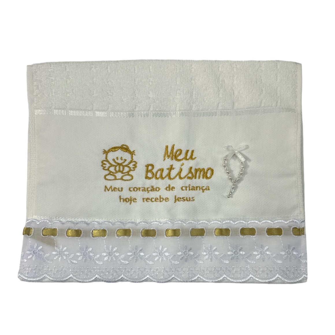*Toalha Batismo Dourada c/ Dezena - 45x31cm.