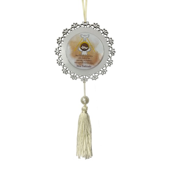 *Adorno Meu Batizado MDF Branco Resinado - 22x9,7cm.