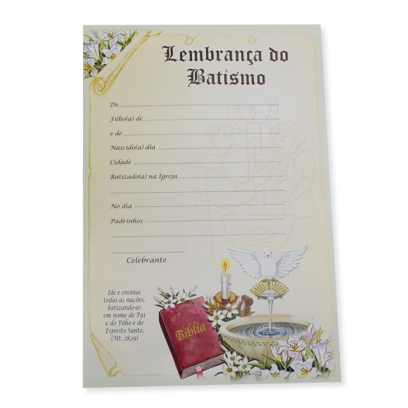 *Certificado Lembrança do Batismo - 28x19cm.