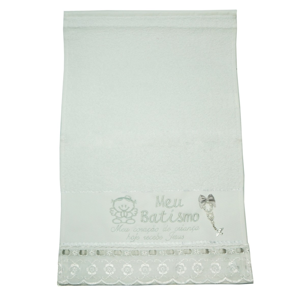 TO1422 - Toalha Batismo Prata c/ Dezena - 45x31cm