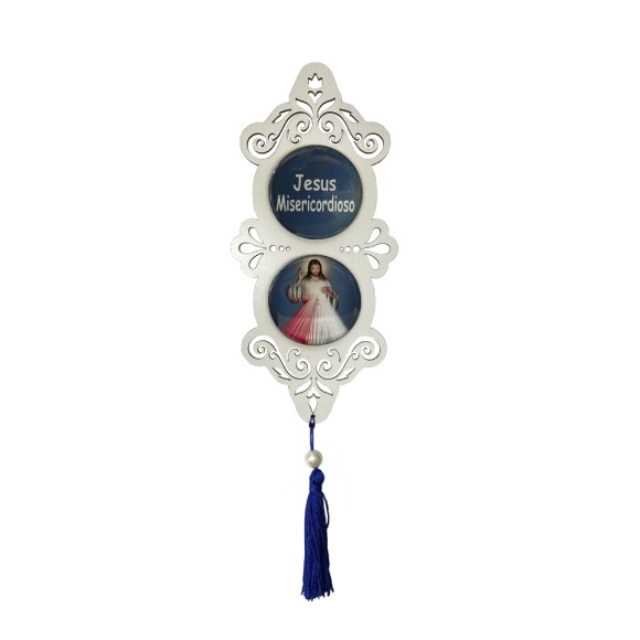 AO4102105 - Adorno Jesus Misericordioso MDF Branco Resinado - 32x10,2cm