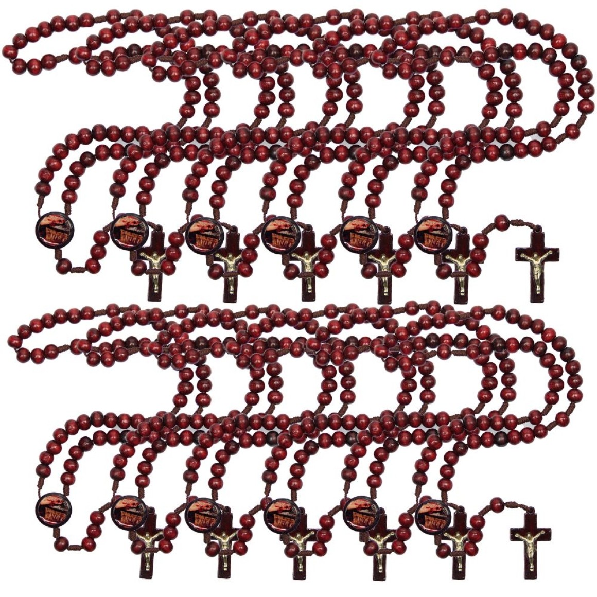 TE940730P12 - Terço Mãos Ensanguentadas de Jesus Madeira c/ 12un.- 37cm