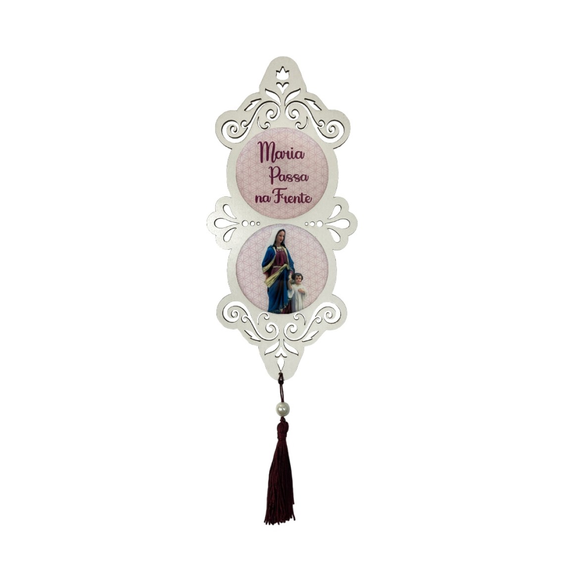 AO4102016 - Adorno Maria Passa na Frente MDF Branco Resinado - 32x10,2cm