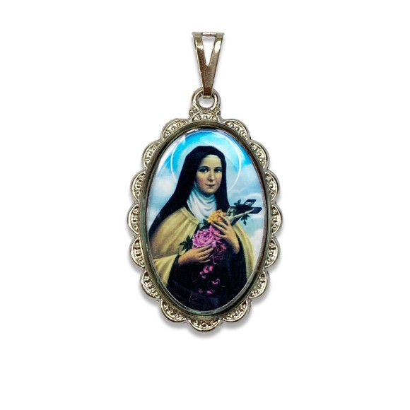 *Medalha Santa Terezinha das Rosas Rendada Níquel - 4,1x2,6cm.