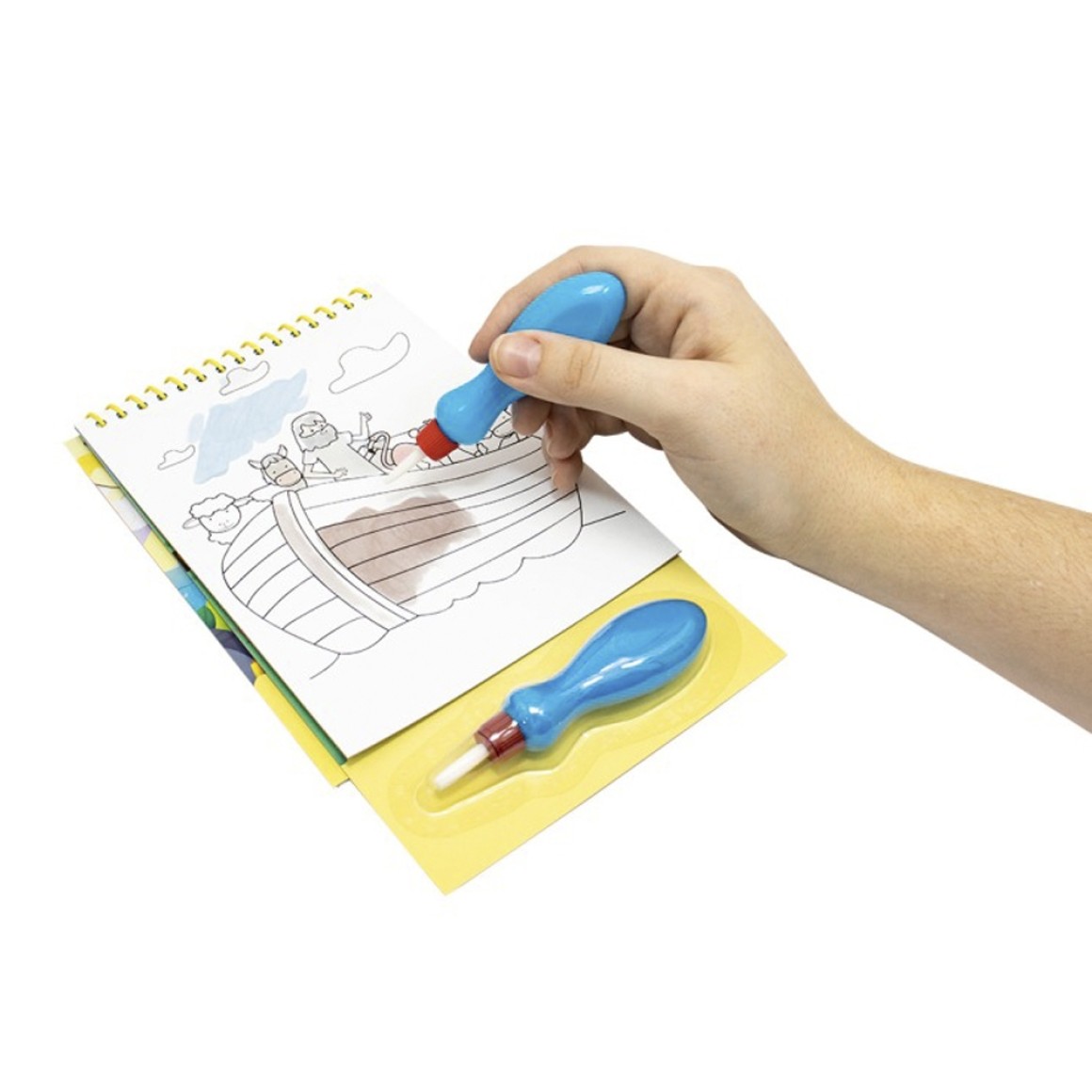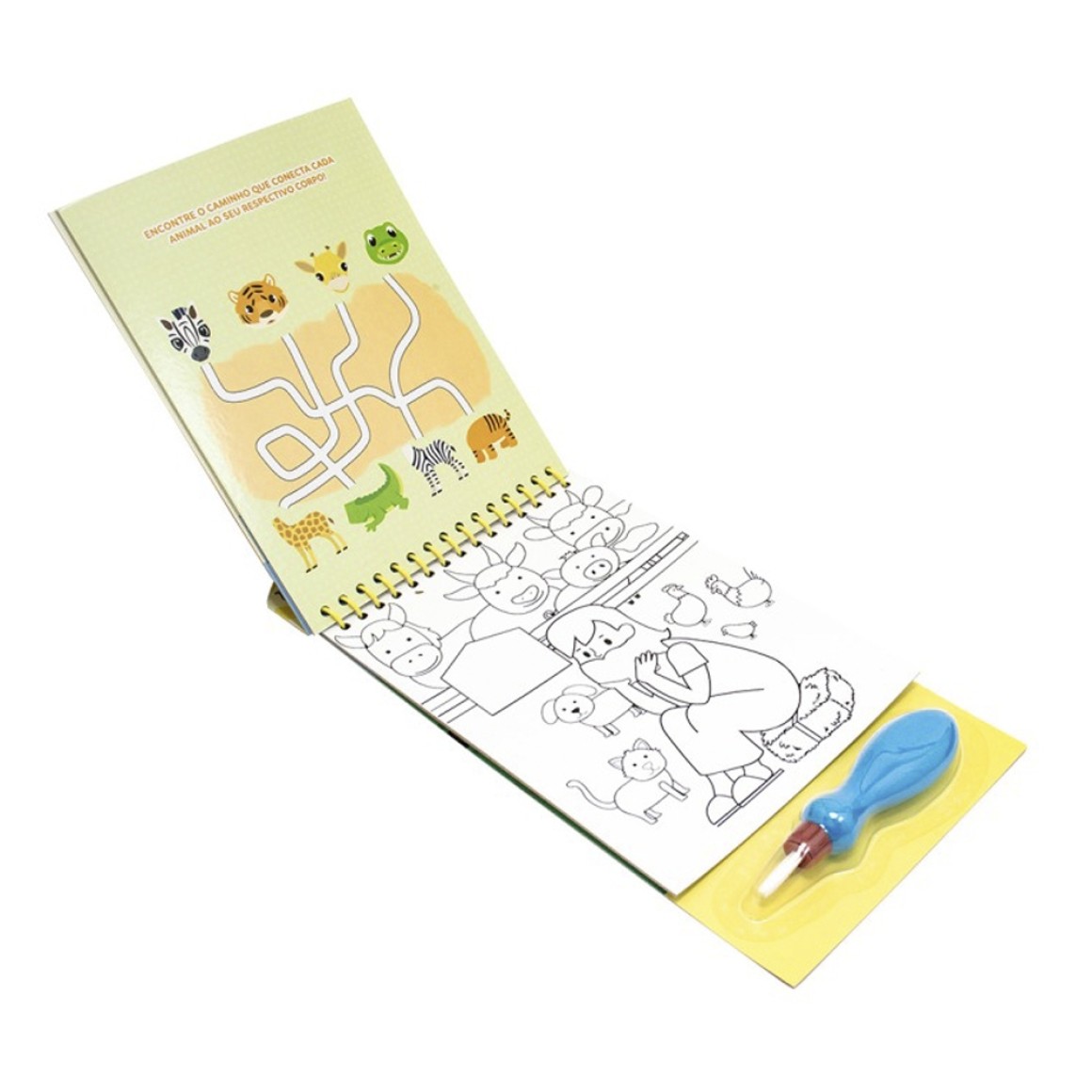 Adicione água ao pincel especial que acompanha o livro e pinte os desenhos para ver a magia das CORES acontecer.