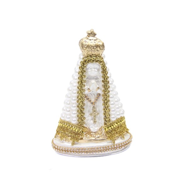 *Imagem N. Sra. Aparecida Infantil c/ Pérola Branca e Strass - 14,5x9,5cm.