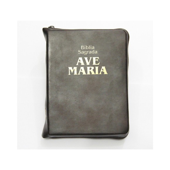 *Bíblia Sagrada Ave Maria Marrom c/ Ziper - 15x11,5cm.