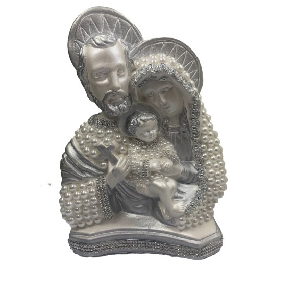 2. IM53081 - Imagem Sagrada Família Prata c/ Pérola e Strass - 27,5x21cm
