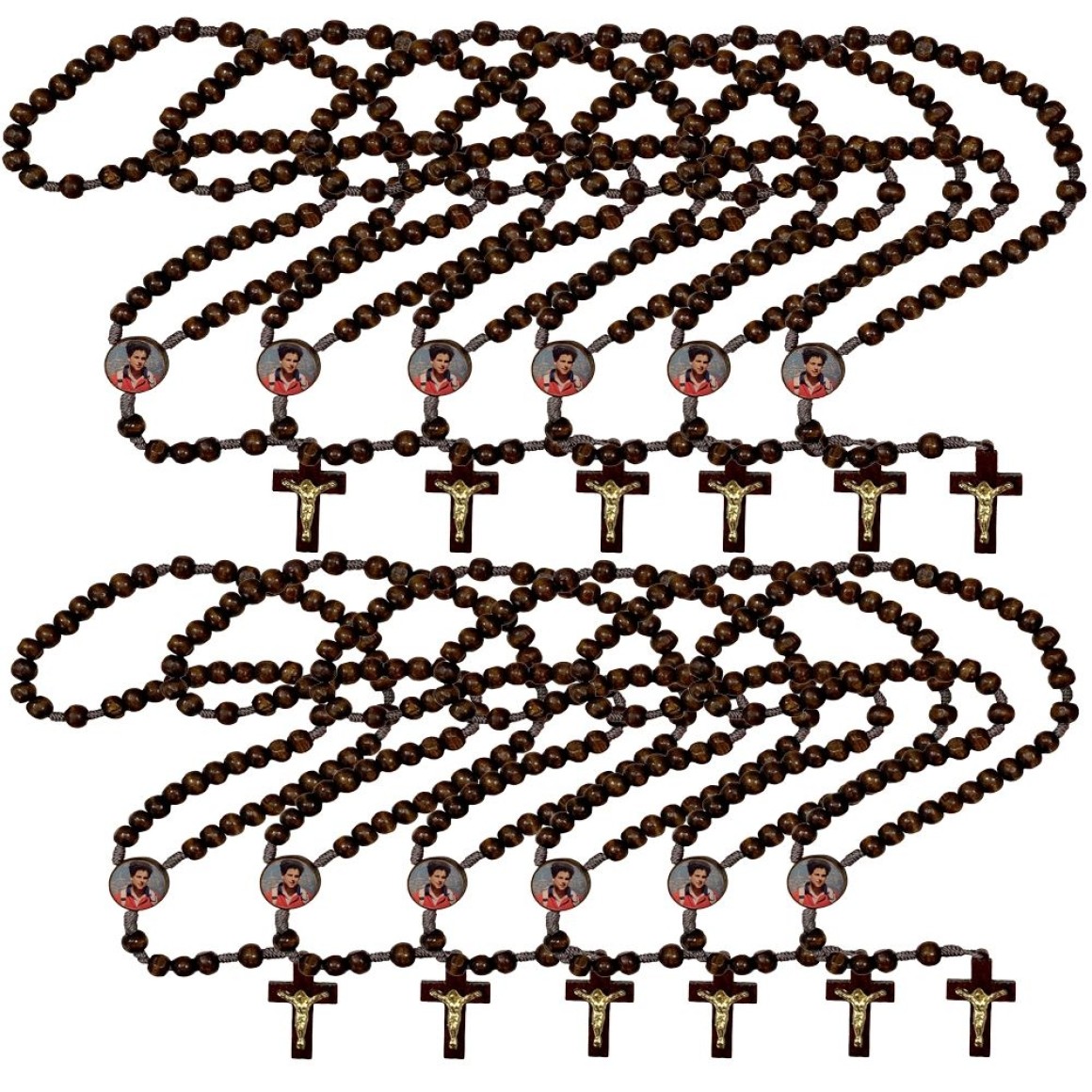 2. TE940570P12 - Terço São Carlo Acutis Madeira c/ 12un. - 37cm