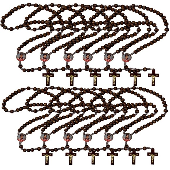 *Terço São Carlo Acutis Madeira c/ 12un. - 37cm.